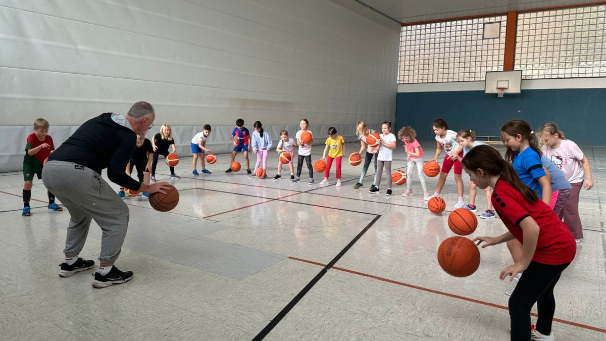 Unter der Anleitung unserer Basketball-Coaches, Sportlehrkräfte und Sporthelfer lernten die Grundschülerinnen und Grundschüler in zwei abwechslungsreichen Unterrichtseinheiten die Grundlagen des Basketballs kennen. Mit viel Bewegung und Begeisterung übten sie die wichtigsten Techniken – Werfen, Passen und Dribbeln. Schnell zeigten sich große Fortschritte, und die Kinder bewiesen, wie viel Spaß Sport und Teamarbeit machen können.