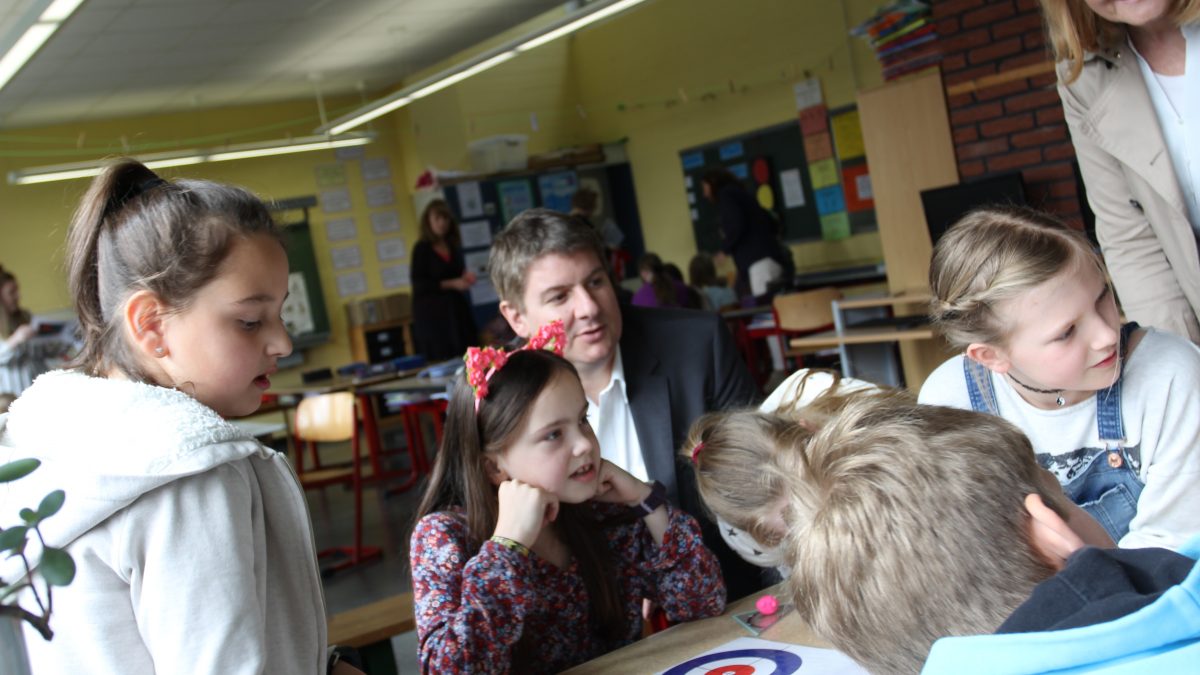 Am 26. April 2018 besuchten wir mit unseren Kanadischen Studentinnen, die seit 2011 jzu uns kommen, um hier Ihr Praktikum zu absolvieren, die Alfred Delpy Grundschule in Salzkotten. Das Praktikum wird von der Kanadischen Professorin Laura Sokal bewertet und begleitet. Schulleiter Herr Fecke-Gehls begrüßte erfreut die Kanadier, die im letzten Jahr die vierten Klassen schon mal besucht haben. Der Bürgermeister wurde zu diesem Event eingeladen und konnte mit den Grundschüler_innen mitspielen und zugucken, wie sie spannend spielerischen Unterricht von den Kanadiern bekamen. Natürlich fehlte auch nicht der Bezug zu Kanada. Die Studentinnen stellten besondere heimisch Tiere und deren Geräusche nach, die die Kinder in immer schneller werdendem Tempo nachmachten. An kreativen Ideen fehlte es ebenfalls nicht, so wurden Polarbilder mit Kreide gezeichnen oder das Wappen von Kanada. Zum Schluß gab es für die Schüler_innen eine kleine Überraschung: die Kanadierinnen hatten Bleistifte, Fahnen, Radiergummis und Anstecker mit der Kanadischen Flagge mitgebracht. Im Anschluss konnten die Kanadierinnen sich mit dem Bürgermeister unterhalten und er erzählte Ihnen viel über die Stadt Geseke.