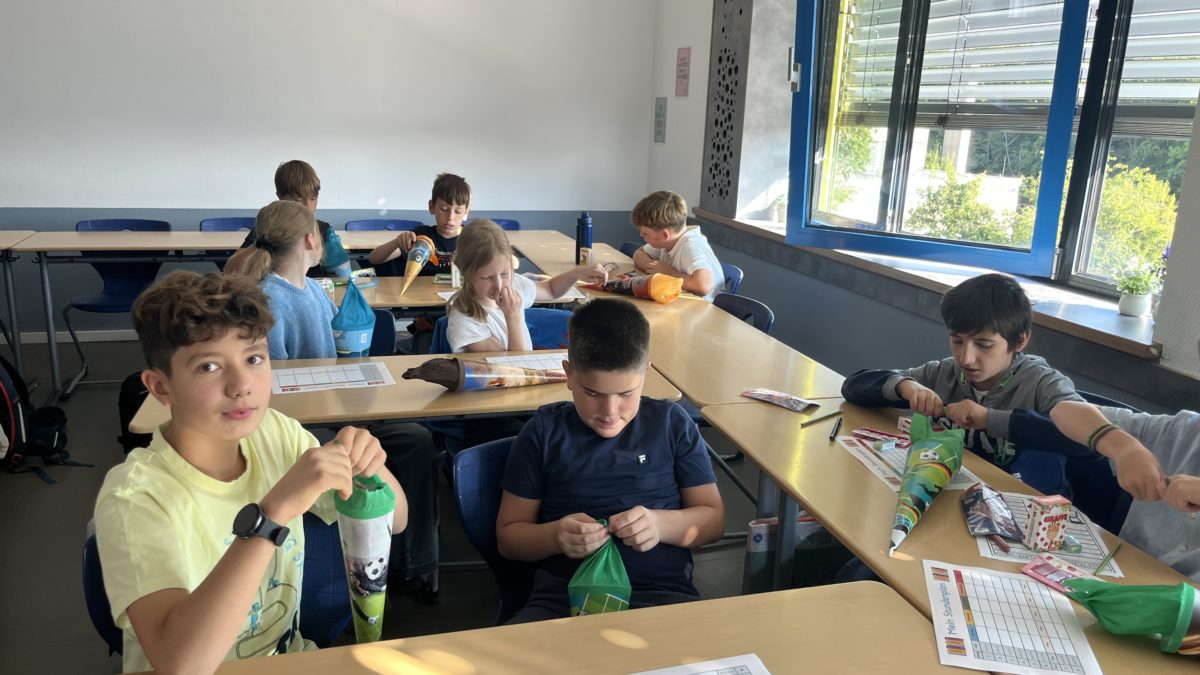 Bevor es weiterging, durften die Kinder ihre Schultüten auspacken. Darin fanden sich viele kleine Überraschungen, von Süßigkeiten bis hin zu nützlichen Dingen für den Schulalltag. Die Freude war groß, und manche Schultüte wurde sofort neugierig begutachtet.