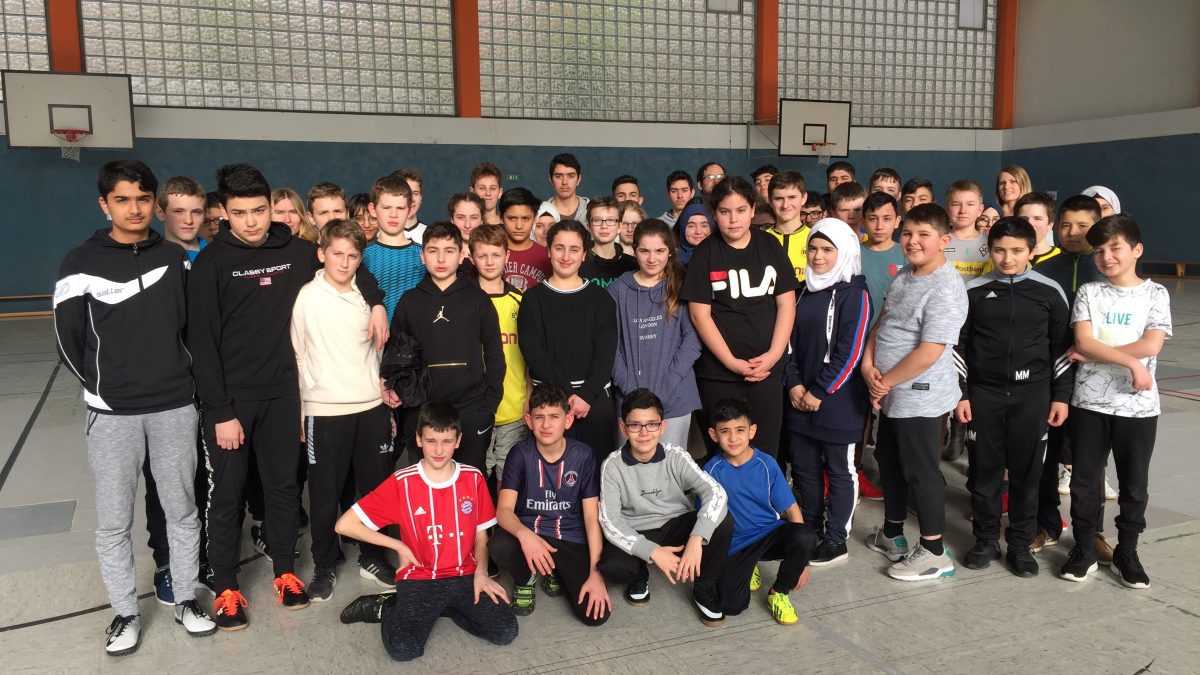 Beim schulinternen Völkerballturnier der Realschule, das traditionell in der letzten Woche vor den Halbjahreszeugnissen stattfindet, setzte sich die Klasse 8a in einem spannenden und hochklassigen Finale gegen die 7a durch. Dritter wurde die Klasse 6a.