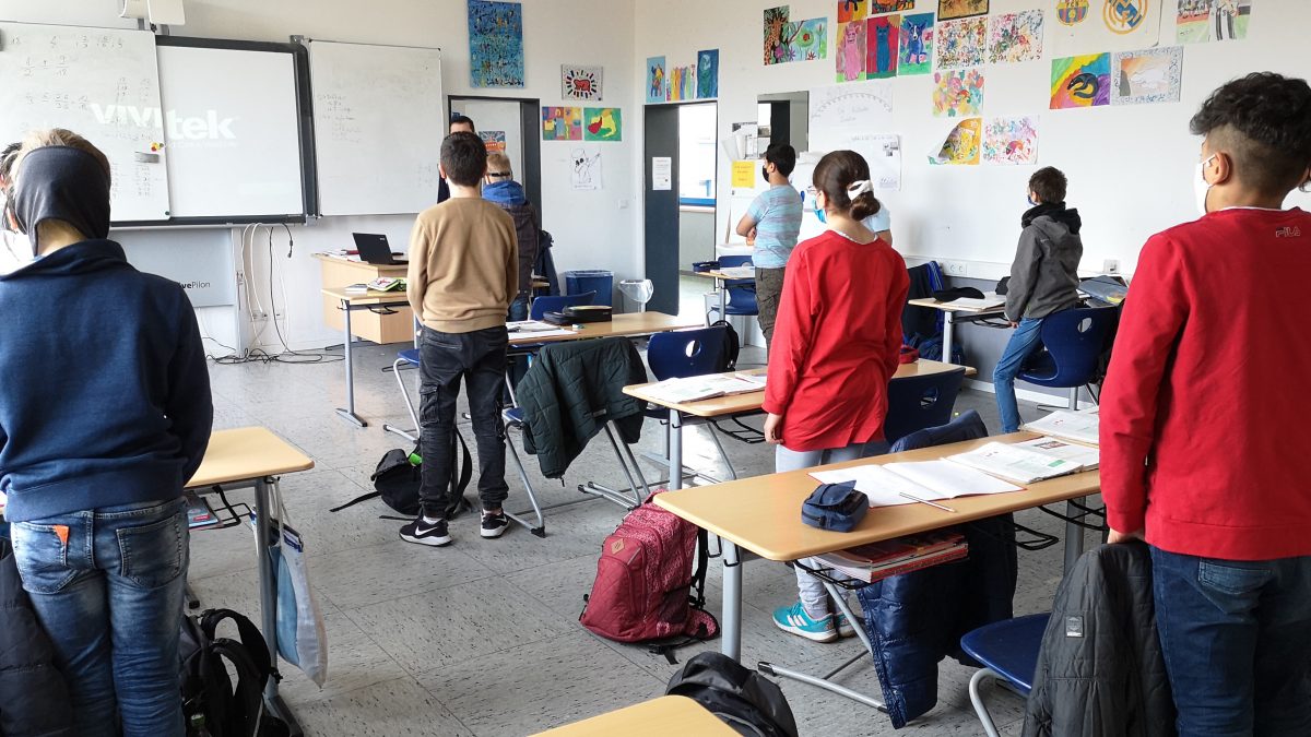 Über die Schulsprechanlage der beiden Schulen hat die Realschulsekretärin eine kurze Rede vorgetragen und anschließend zur Schweigeminute eingeladen.