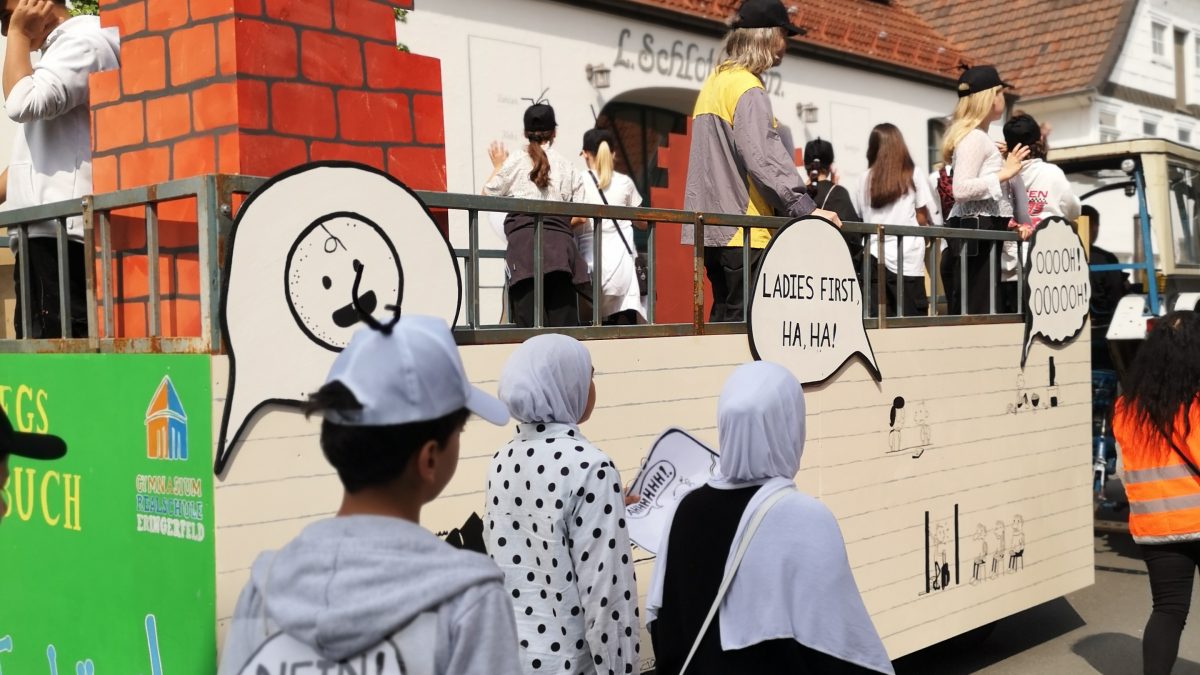 Am Samstag, den 3. Mai 2025, haben die Realschule und das Gymnasium Eringerfeld mit großer Freude am traditionellen Gösselkirmesumzug teilgenommen. Mit dabei war ein liebevoll gestalteter Wagen, der im Rahmen des Unterrichts und an zwei Projekttagen von Schülerinnen und Schülern kreativ entworfen und gestaltet wurde. Unter dem Motto „Gregs Tagebuch“ präsentierten sich die beiden Schulen lebendig und engagiert – ein echter Hingucker im Festzug! Die Teilnahme am Umzug bot den Kindern nicht nur die Möglichkeit, ihre Gestaltungsideen praktisch umzusetzen, sondern auch, das Gemeinschaftsgefühl zu stärken und die Schule in der Öffentlichkeit zu repräsentieren. Ein herzlicher Dank geht an alle Beteiligten, die mit viel Einsatz und Begeisterung zum Gelingen dieses besonderen Tages beigetragen haben! Besonders auch an die Kunstlehrerinnen des Gymnasums, Frau Willemsen und Frau Osterholz, die zum wiederholten Male den Umzug der Gösselkirmes für die Schulen Eringerfeld vorbereiteten und durchführten.