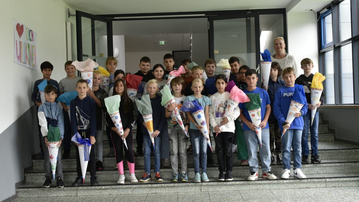 Der Beginn eines neuen Schuljahres ist sicherlich für alle Schüler/innen mit Aufregung und Vorfreude verbunden. Etwas ganz Besonderes ist aber immer der Start an einer neuen Schule. Standesgemäß wurden daher die Schüler/innen unserer neuen 5. Klasse von ihrer Klassenlehrerin, Frau Anderson, mit persönlichen Schultüten begrüßt.