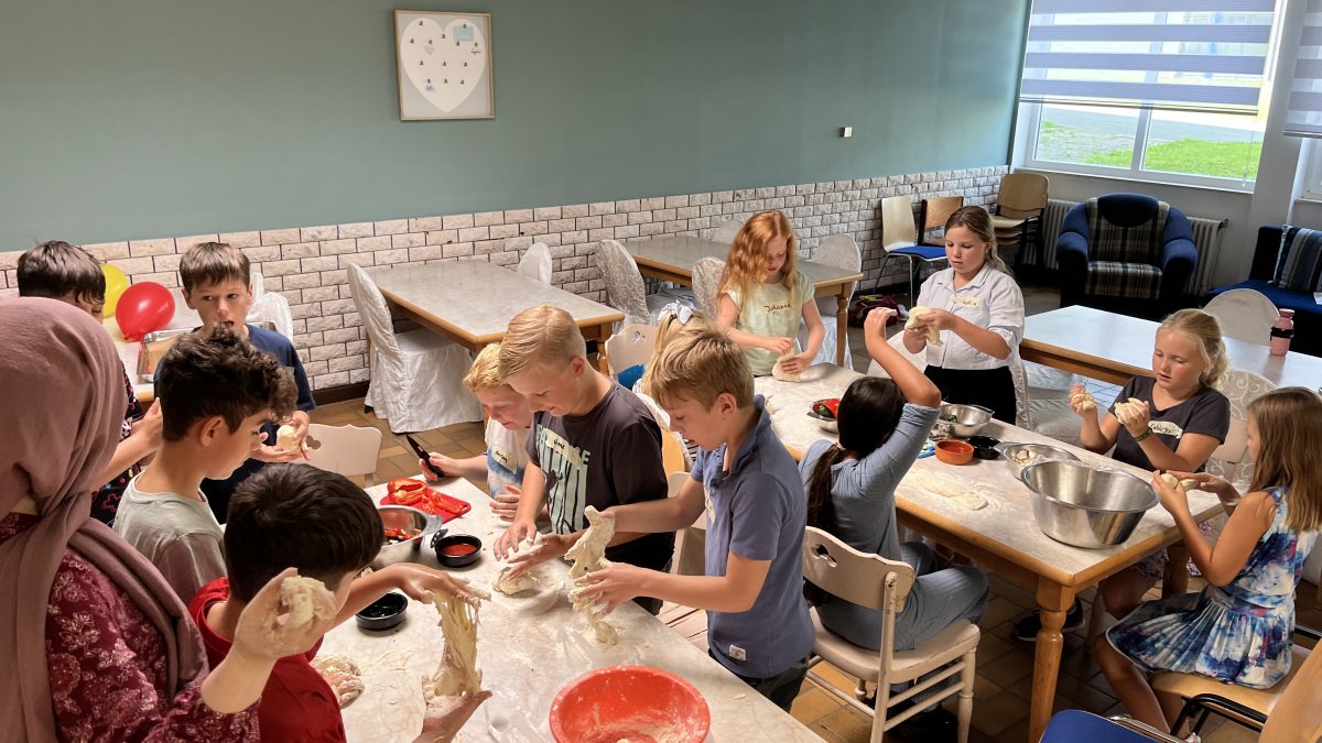 In Begleitung der Klassenleitungen beider Schulen sowie drei ehrenamtlicher Schülerinnen und Schülern der 10. Klassen aus dem Staff-Team der Schulsozialarbeit wurden zunächst bei einer Partie Bingo Autogramme gesammelt. Danach durften die Kinder sich mit einer warmen Dusche mit Komplimenten überschütten. Anschließend ging das große Pizzabacken los. Am Ende des Tages hatten wir eine ganze Ladung an vielen verschiedenen Pizzen, jede Menge Bienen ? und sehr viel Spaß.