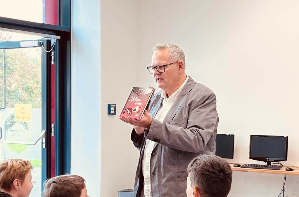 Nach einer kurzen Vorstellung seiner Person und des Lebensweges begann Ulli Potofski, der neben der ihn bekannt machenden Tätigkeit als Fußballreporter auch als Schriftsteller tätig ist und bei verschiedenen Hörspielen mitwirkte (z.B. “Die drei ???” oder “Teufelskicker”), mit dem Vorlesen des Einstiegskapitels von “Mut ich”. Hierbei handelt es sich um einen authentischen und aufwühlenden Jugendroman zu den Themenbereichen Gruppenzwang, Mobbing, schlechtem Gewissen und Mut, der seinen Ursprung darin findet, dass nach dem Ausstrahlen der Netflix-Serie “Squid Games” ähnliche Bestrafungsspiele auf verschiedensten Schulhöfen nachgespielt wurden und hier Fiktion zur Realität bei Kindern und Jugendlichen führte.