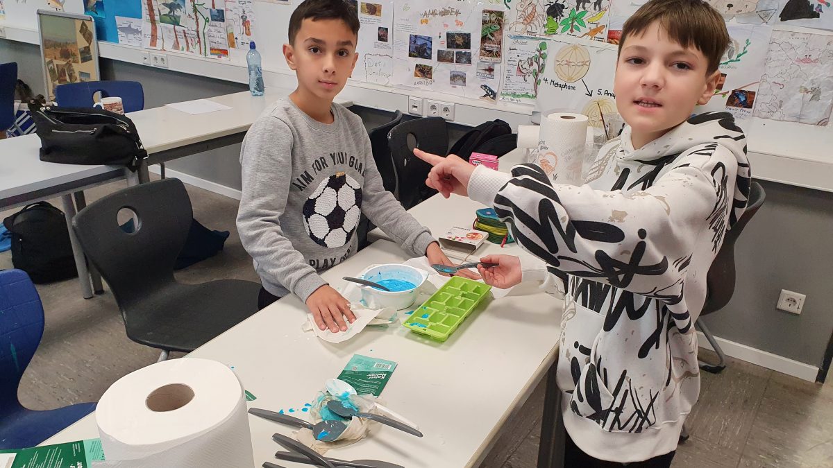 Neulich wurden in der Experimente AG Wasserfarben selbst hergestellt. Dazu braucht man in erster Linie Natron, Speisestärke, Essig und verschiedene Lebensmittelfarben. Der Vorteil dieser Farben ist, dass sie keine Stoffe enthalten, welche Umwelt oder Gesundheit belasten. Das kann aber nämlich bei herkömmlichen Wasserfarben immer mal wieder der Fall sein.