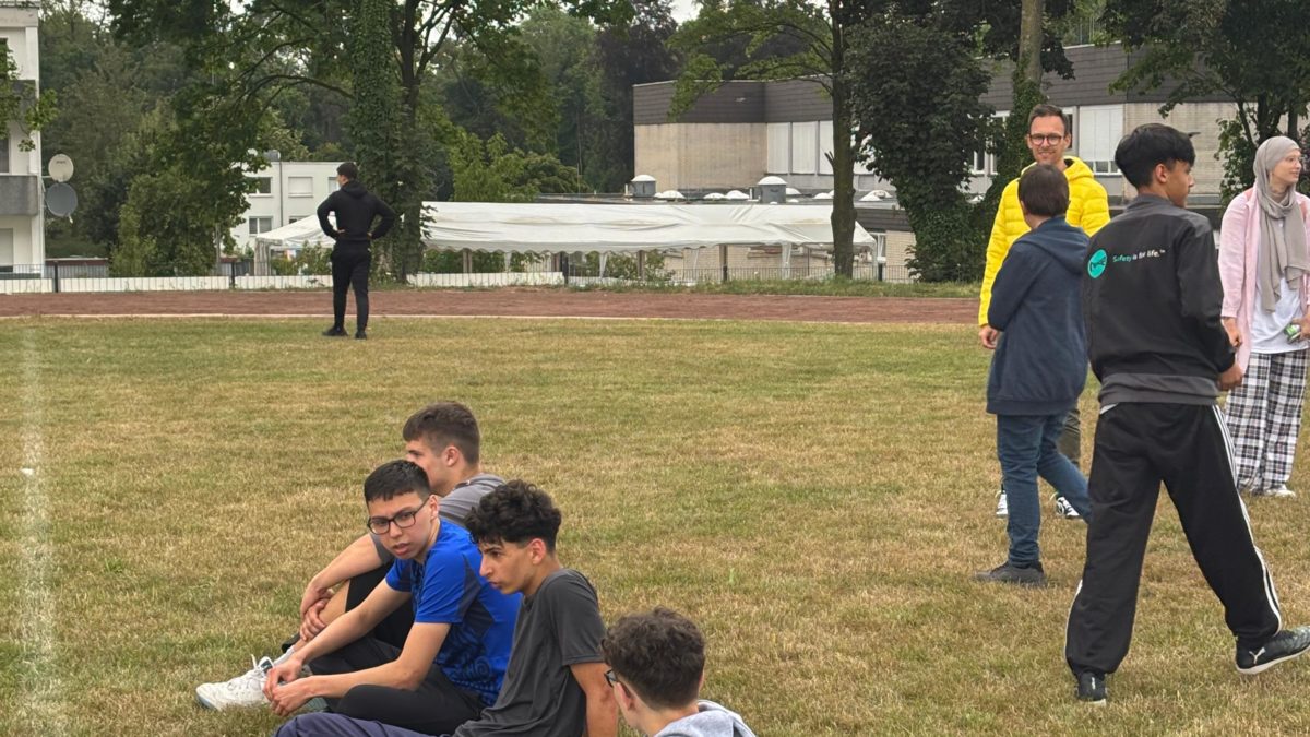 Kurz vor den Sommerferien veranstalteten Realschule und Gymnasium ein gemeinsames Sportfest. Vormittags spielten die Schülerinnen und Schüler Fußball, Basketball und Beachvolleyball und konnten sich hierbei auspowern.